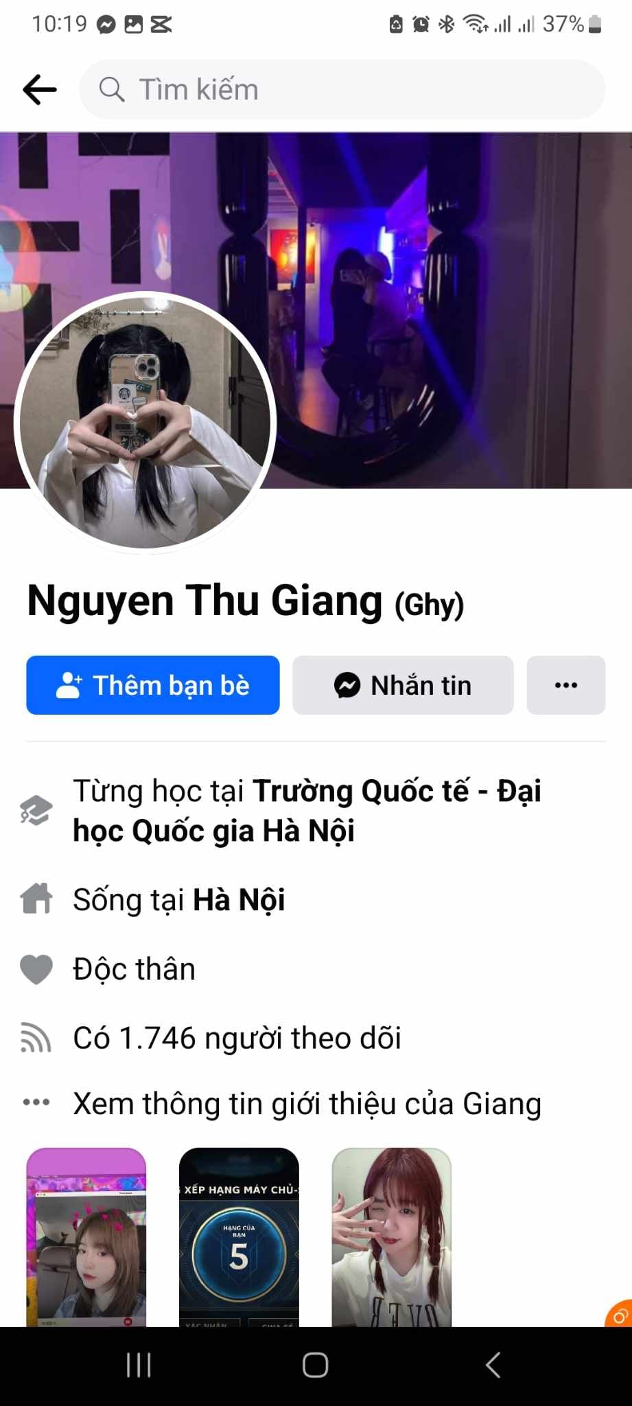 Mặt Nguyễn Thu Giang và cái bím múp cực nhạy