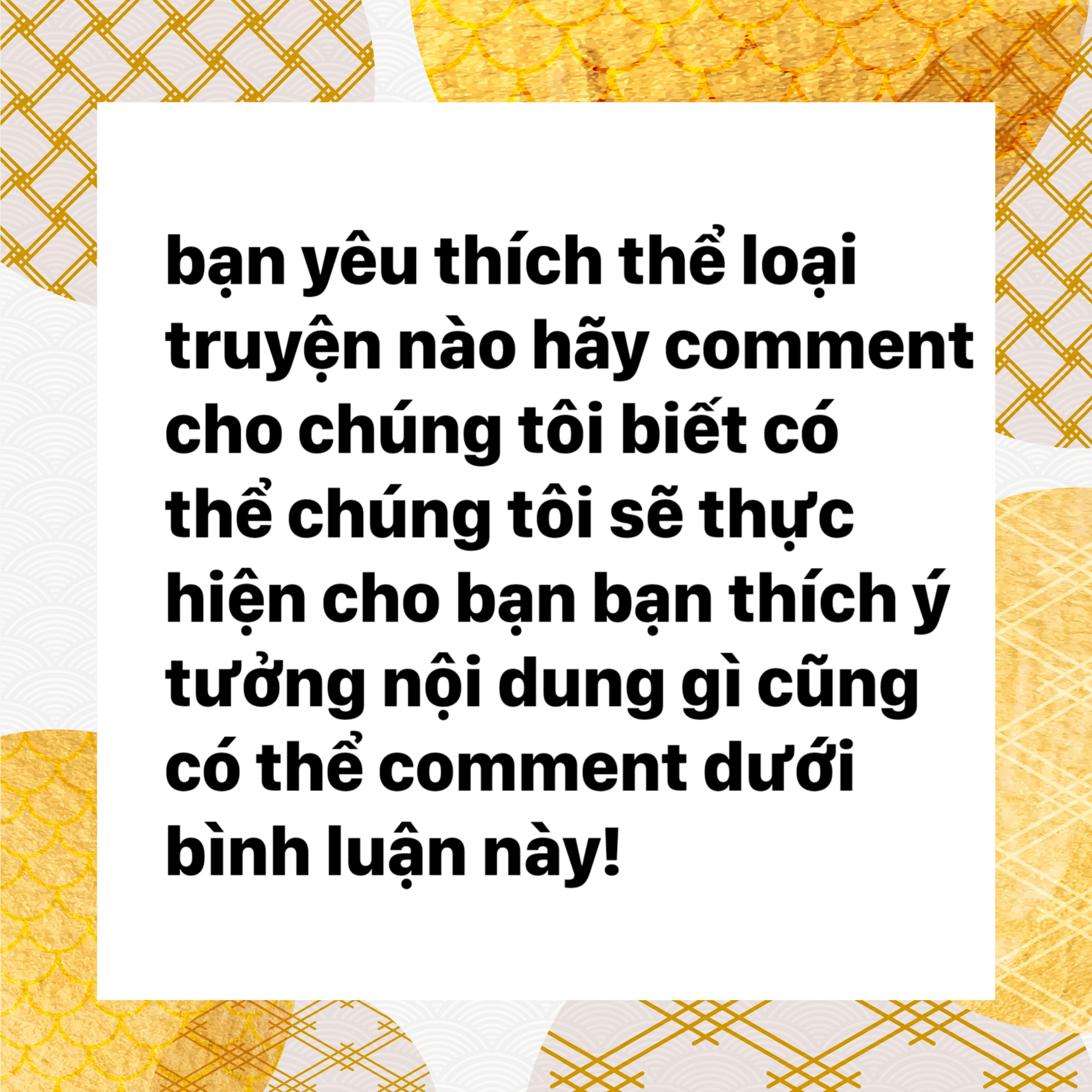 Bạn thích thể loại gì hãy bình luận dưới đây để có thể thực