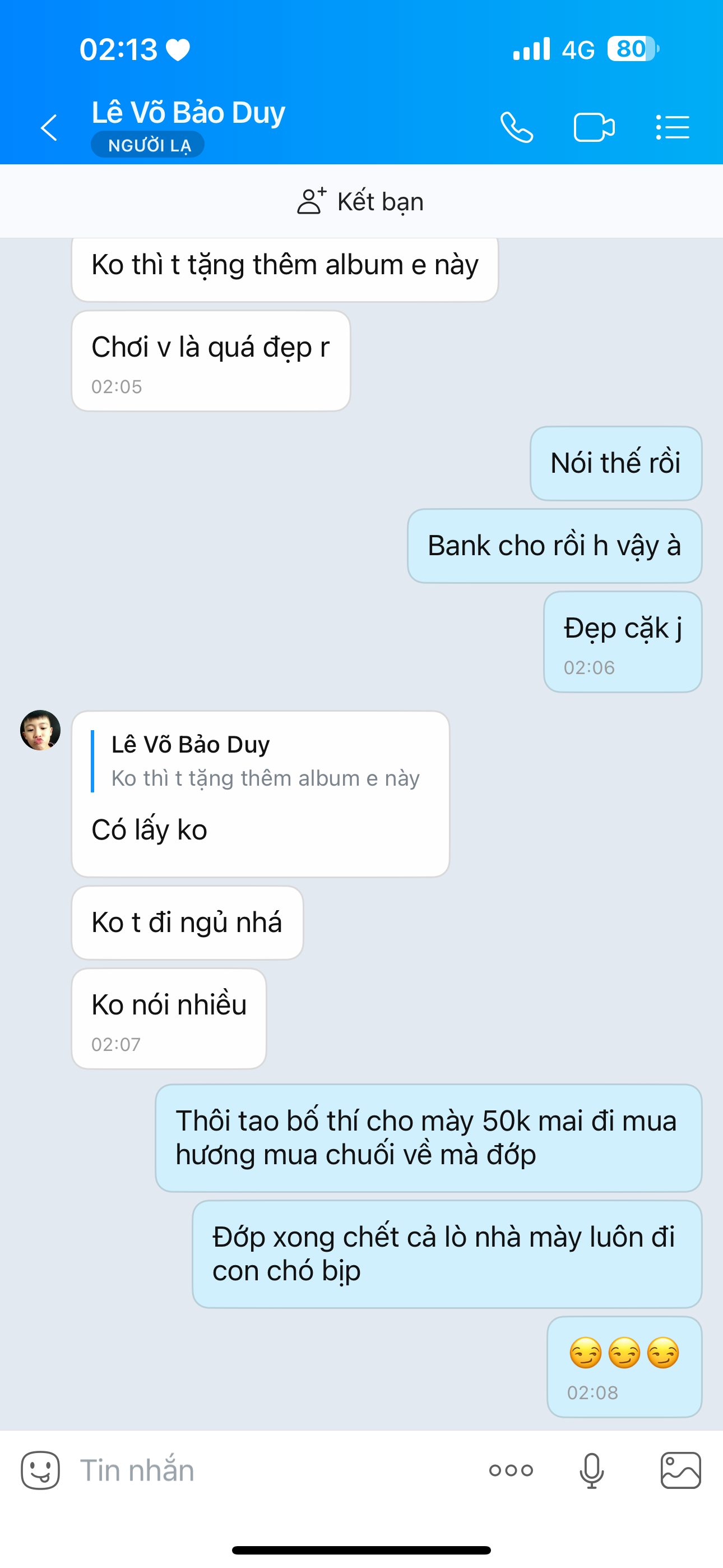 Tao bố thí cho mày 50k mai mua nhang mua chuối mua hoa về mà cúng cho mày và gia đình nhà mày đớp nha con chó